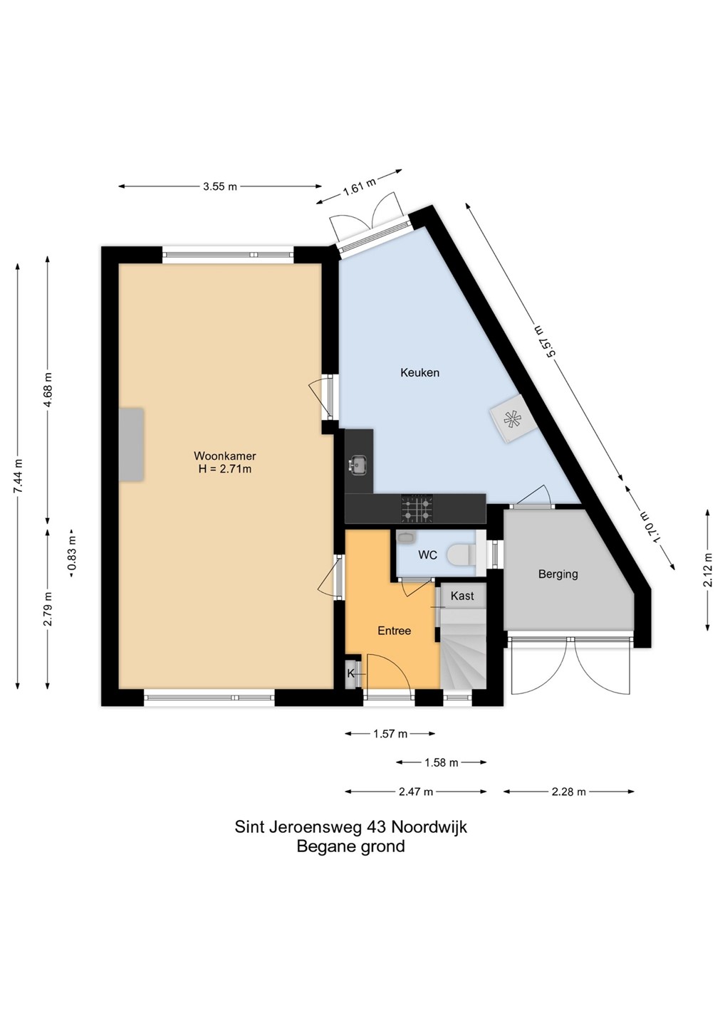 Entree via de praktische doch fraai aangelegde voortuin, hal met trapopgang, trapkast, garderobekast en toilet. De lichte woonkamer is vorzien van een visgraat PVC vloer en een schouw en geeft toegang naar de riante eetkeuken. Deze is voorzien van een combi-oven, inductie kookplaat, vaatwasser en een losse koel-vriescombinatie. In de bijkeuken is voldoende ruimte om wat voorraad op te slaan en ook zit hier de aansluiting voor de wasapparatuur.